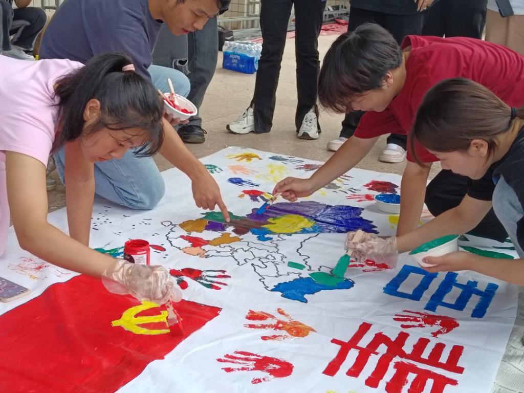 2023级财税专一班的刘笑言同学激动的说:“大家齐心协力完成这幅献给祖国的画卷满满的成就感和自豪感油然而生!”