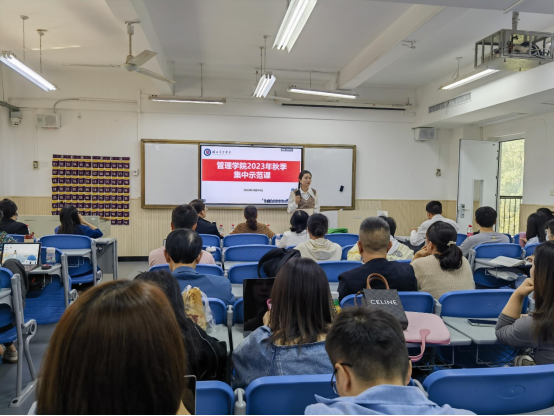 为发挥优秀教师的引领示范作用,进一步提高教师课堂教学能力,提升教师队伍的课堂教学水平,促进教师团队成长,顺利迎接本科合格评估。10月14日,管理学院在综合楼201及101室组织开展2023年秋季集中示范课研讨活动,教学质量管理处督导专员周秀荣及彭宜佳两位教授亲临现场指导,学院全体专职教师参加此次活动。