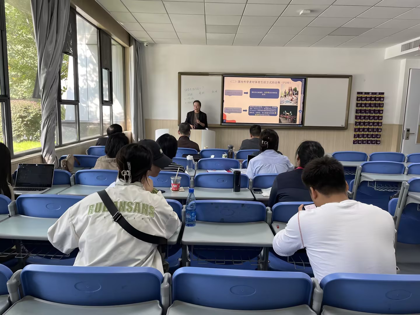 示范课环节,由李艳老师主讲《体育社会学》课程,从体育生活方式的构成与养成两个方面进行讲授。同时李艳分享了教学设计、教学内容的选择、课程思政的融入以及日常与学生的沟通。