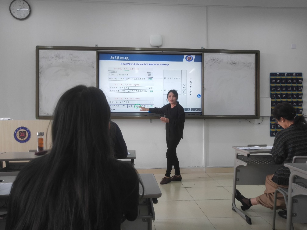 尹群老师讲授的是《成本会计》课程中产品成本计算之分类法的相关内容,用贴近生活的“豆腐、豆皮、豆干”来举例引入主题。尹老师讲授过程中充满激情、思路清晰、表达流畅,老师们积极参与到课堂中。授课过程中,在督导提议下,还进行了“停电”、“设备故障”等突发情况下教师如何应变的模拟场景教学。