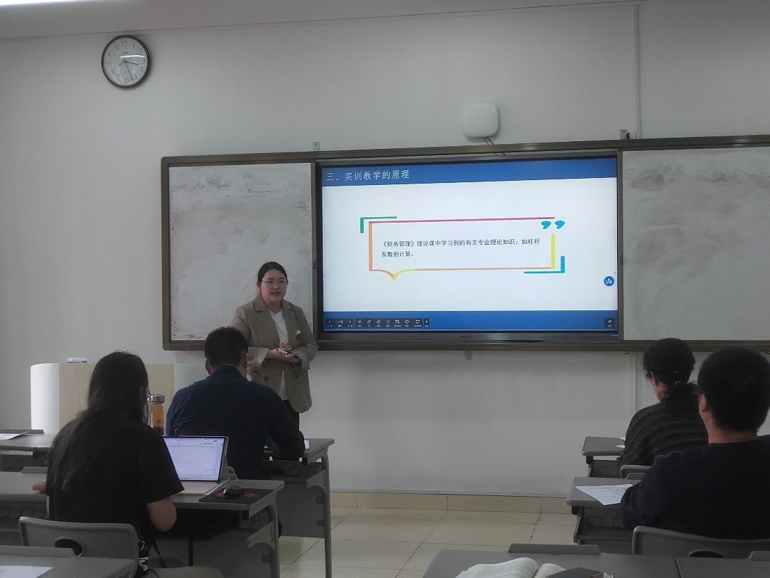 龙梦琪老师讲授的是《财务管理实训A》课程中资本结构决策实训——杠杆原理的相关内容,课堂上龙老师用定义公式和画图理解的方式带领同学们回顾了财务管理中的杠杆效应相关理论知识,并对实训课堂的目的、要求、原理等作出了讲解,通过例题演示的方式讲解实验步骤。