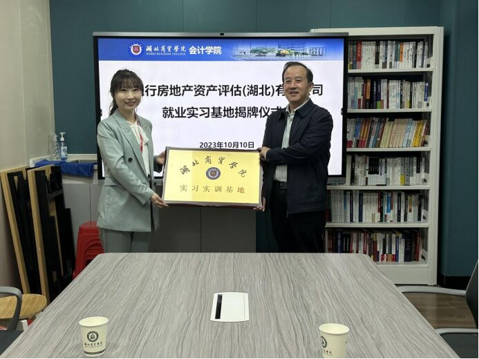 最后,湖北商贸学院副校长徐跃进与日晟行房地产资产评估(湖北)有限公司人事总监张媛婷代表双方交换授予“实习实训基地”牌匾。