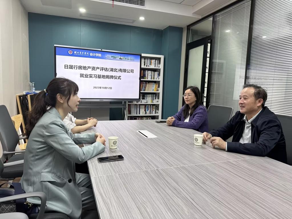 为贯彻落实党中央、国务院关于高校毕业生就业工作的决策部署,积极响应教育部“全国高校书记校长访企拓岗促就业专项行动”,10月10日,日晟行房地产资产评估(湖北)有限公司来到我校会计学院座谈,副校长徐跃进,会计学院副院长郑晓燕和日晟行人事总监张媛婷等人进行了交流。座谈会后,双方达成合作意向并交换授予“实习实训基地”牌匾。