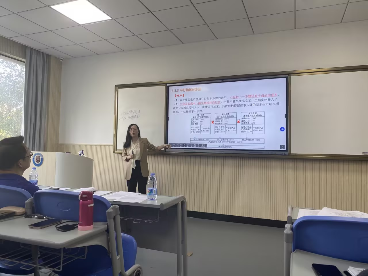 两位老师精心准备,讲解准确,重点突出,课堂氛围活跃。孙孟野老师由案例“牛奶厂如何核算牛奶成本”导入,引发学生思考,频繁互动,生动清晰的讲解了产品成本计算的分类法。袁玎老师由案例“你知道汽车是如何生产吗?——探秘比亚迪西安智慧工厂”导入,自然融入思政,讲解了产品成本计算的平行结转法。