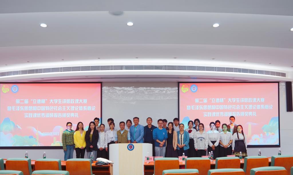 为深入贯彻落实习近平新时代中国特色社会主义思想和习近平总书记关于深化思政课改革创新的重要指示精神,推进“大思政课”建设,发挥思政课立德树人关键课程作用,引导青年大学生自觉从党的重大成就和历史经验中增长智慧,铸牢听党话、跟党走的思想根基,坚定“四个自信”,做到“两个维护”,以实际行动践行党的二十大精神。10月19日,马克思主义学院在鸿博楼阶梯教室一举办第二届“立德杯”大学生讲思政课大赛,马克思主义学院院长孔波、副院长陈泽华、副院长金敏和胡苗苗教授担任此次活动评委,经济学院党总支书记吴俊、人工智能学院党总支刘冰清和教育学院直属党总支书记郑洁出席此次活动。
