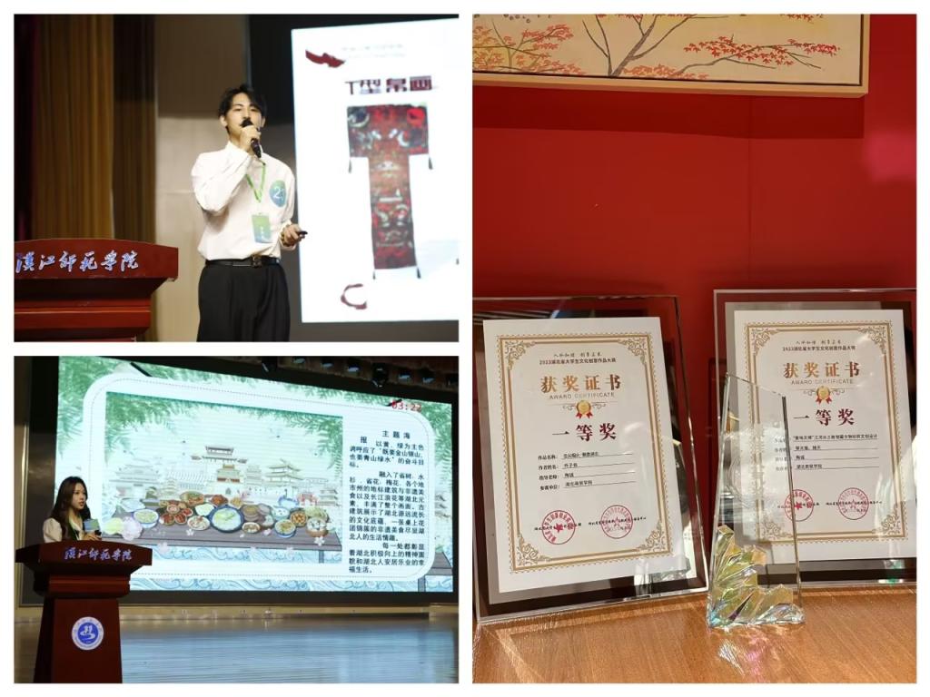 激情点燃梦想,创意成就未来。10月24日,2023年湖北省大学生文化创意作品大赛复赛路演决赛盛典在汉江师范学院南风剧场落下帷幕。经过激烈角逐,我校艺术学院两项参赛作品《舌尖烟火•飘香湖北》《“楚地文博”江河水之路馆藏纹样文创设计》脱颖而出夺得桂冠,此外《舌尖烟火•飘香湖北》还被评为“最佳人气奖”。