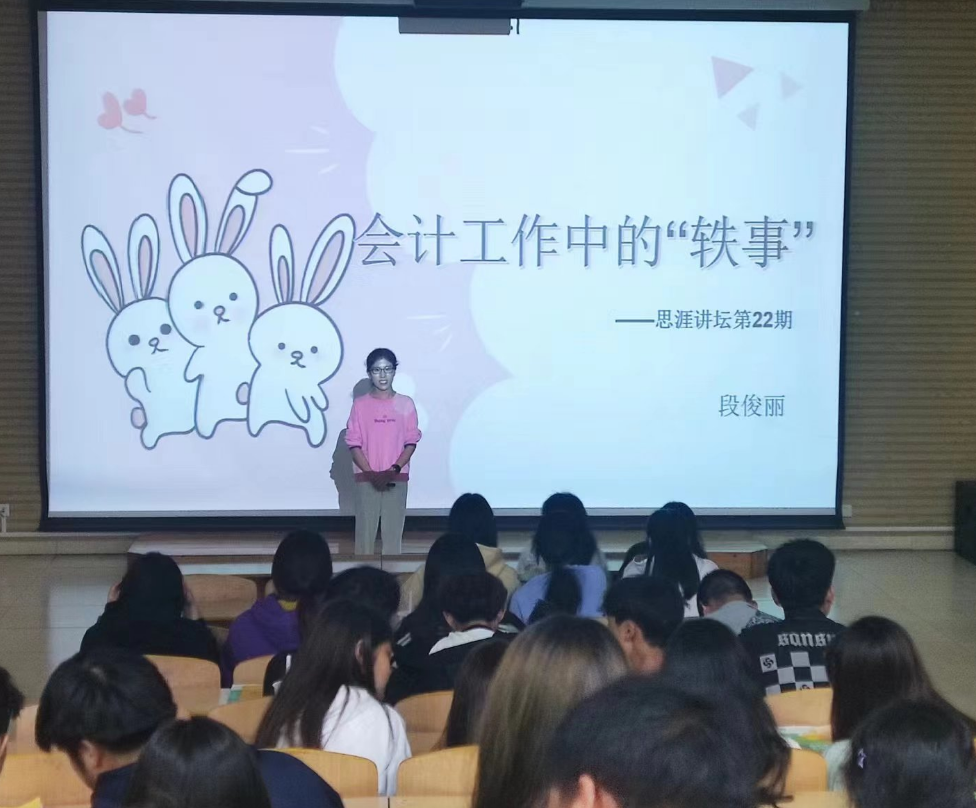 为进一步拓展学生学术视野,提高会计专业新生培养质量,促进我院会计学科高质量发展,10月25日晚,第22期题为《会计工作中的“轶事”》的思涯讲坛在咸宁校区B009教室成功举行,讲座由我院段俊丽老师主讲,23届会计专业大一新生聆听了本次讲座。