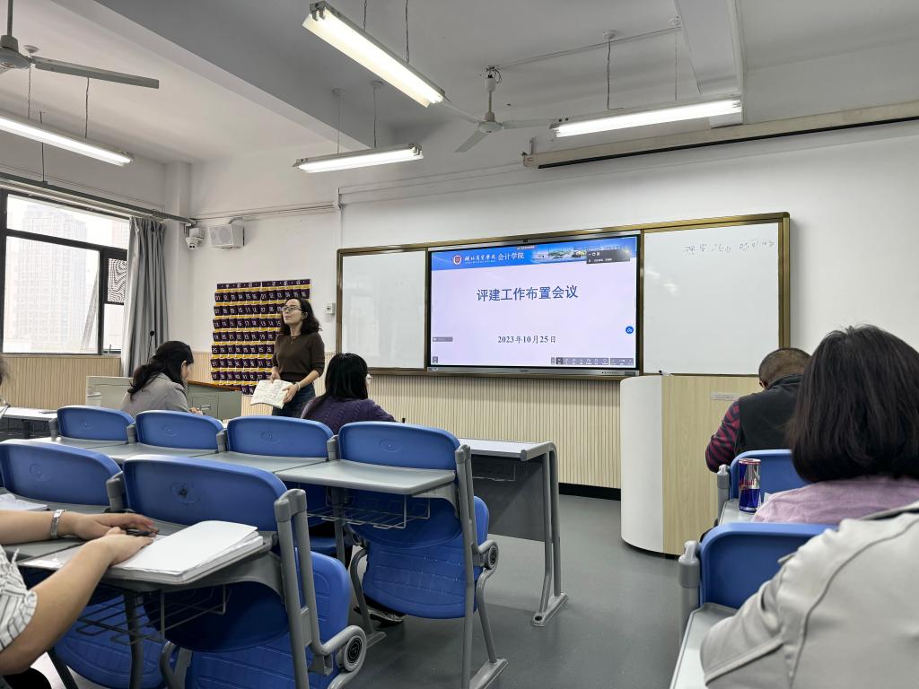 10月25日下午,会计学院在武汉校区召开评建工作专题会议,咸宁校区以线上会议方式参加。本次会议由院长吕碧君主持,党总支书记赵忠民、副院长肖虹霞,副院长郑晓燕,副书记詹卓,全体教职工参会。
