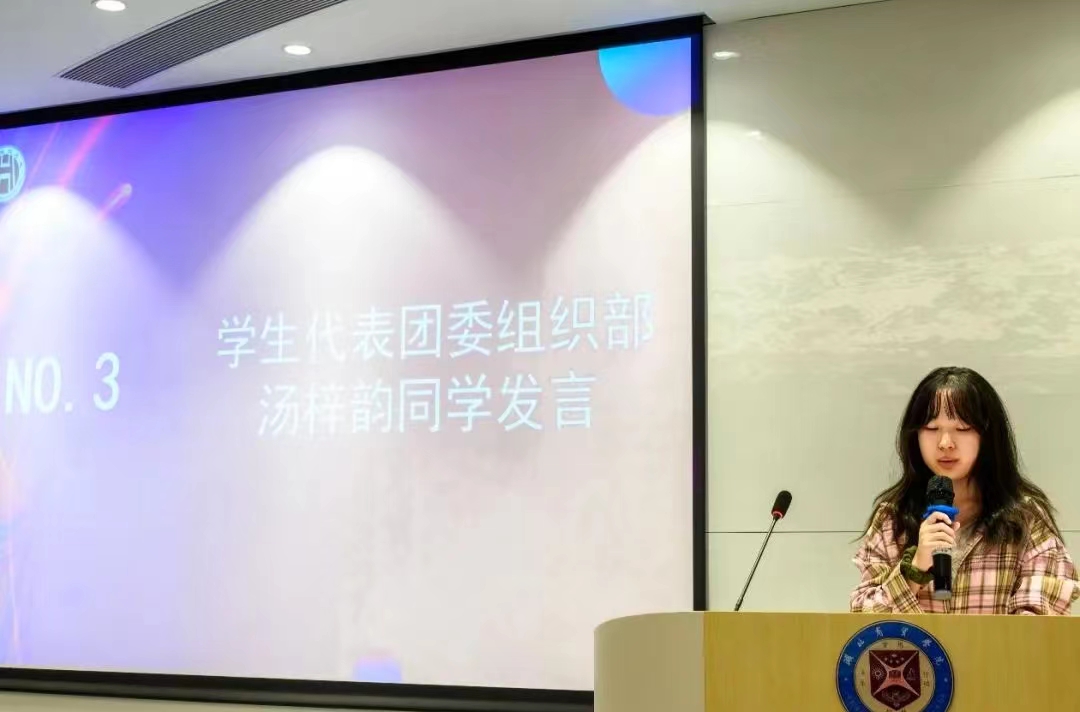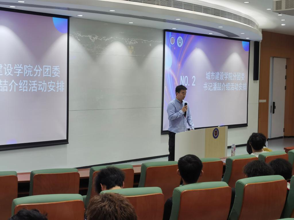 开幕式第二项:学院团委书记潘喆书记介绍本次科技文化节活动安排,他介绍本次科技文化节活动主要由学科类竞赛项目、校园文化评比类项目和科技成果展示三个部分组成,同时,他期望同学们充满奋斗的热情与活力参与到本次活动的各项赛事中,期望能在赛场上见到同学们奋斗的身影,为未来的省赛、国赛贡献自己的力量。