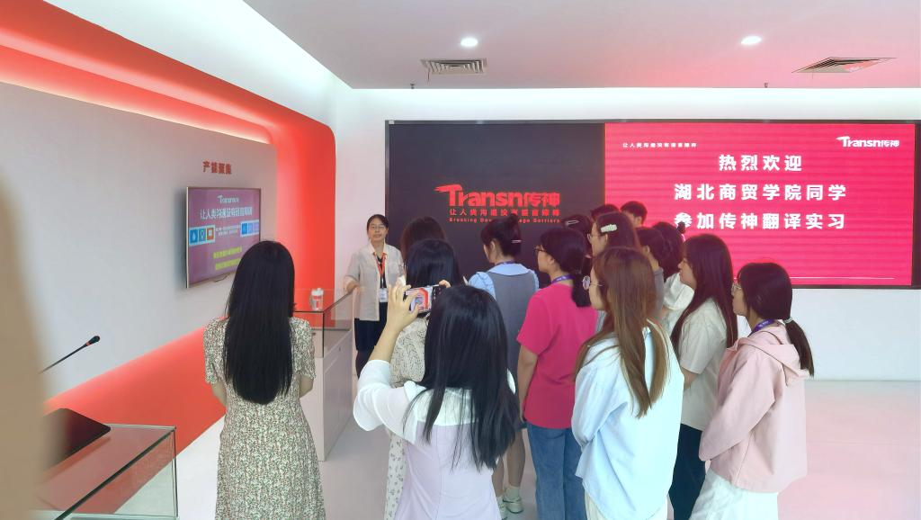 培训伊始,传神负责人饶敏从翻译行业的就业环境到传神公司的企业文化、发展历程、发展规模、毕业生实习时间、实习内容进行一一讲解。随后,在饶敏和公司其他负责人带领下,前往公司文化墙、各部门工作平台和实习生工作环境参观。