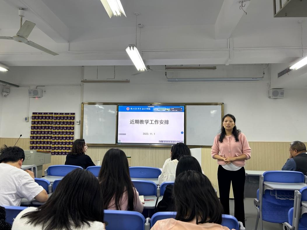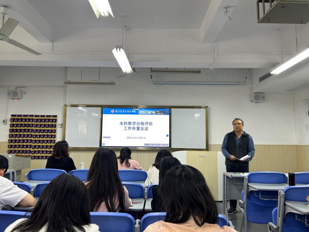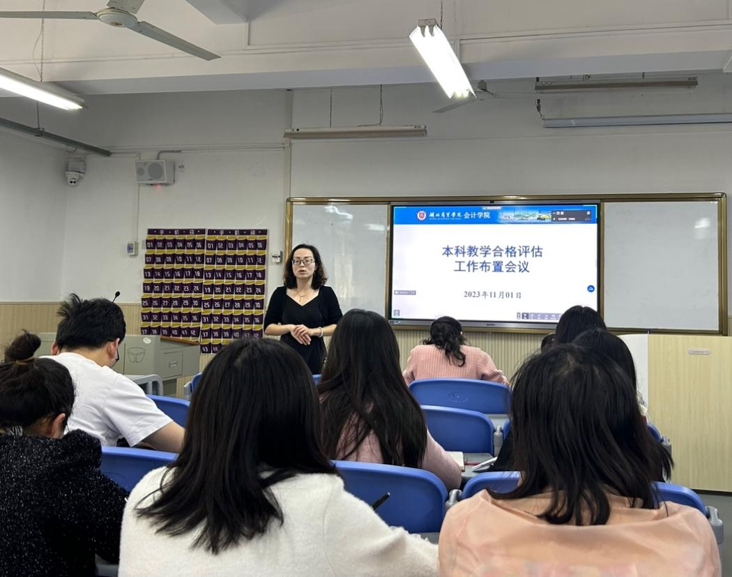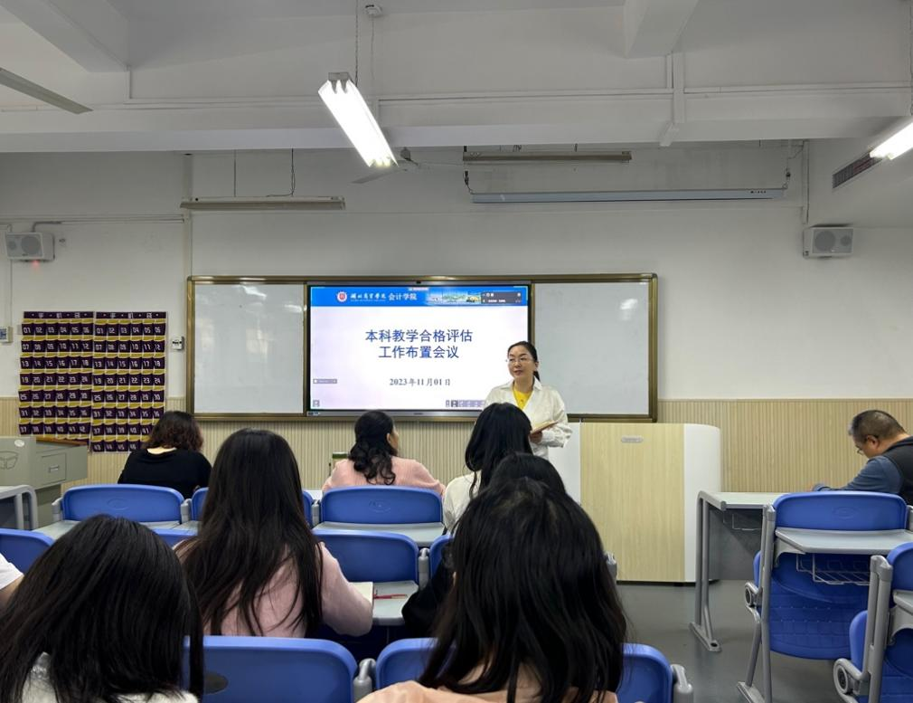 为更好地迎接本科教学合格评估,11月1日下午,会计学院在武汉校区综合楼召开“本科教学合格评估工作专题布置会议”,全体教职工参会,咸宁校区以线上会议方式参加。会议由院长吕碧君主持,党总支副书记詹卓、副院长郑晓燕、副院长肖虹霞分别发言。