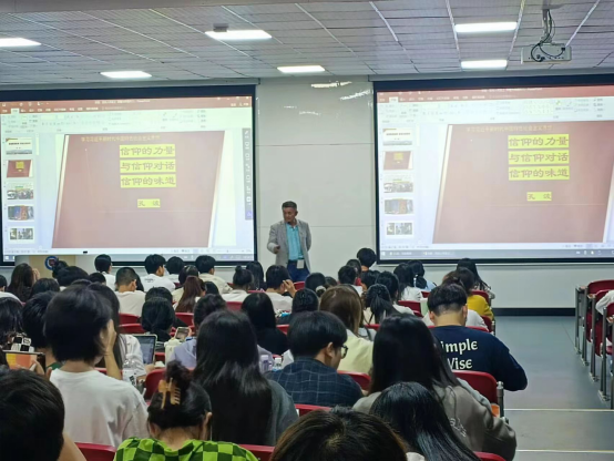 10月31日,马克思主义学院党支部书记为本期270名发展对象在鸿博楼J2作了《从信仰的力量—信仰的味道》为主题的专题党课。