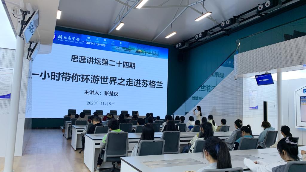 为了拓宽学生的国际视野、丰富同学们的课余生活,会计学院于11月8日在智能会计学习中心举办第二十四期思涯讲坛,主题为“一小时带你环游世界之走进苏格兰”。本次的讲座的主讲嘉宾是会计学院张楚仪老师,23级会计本1-7、23审计本1、23财管本1班学生参加了讲座。
