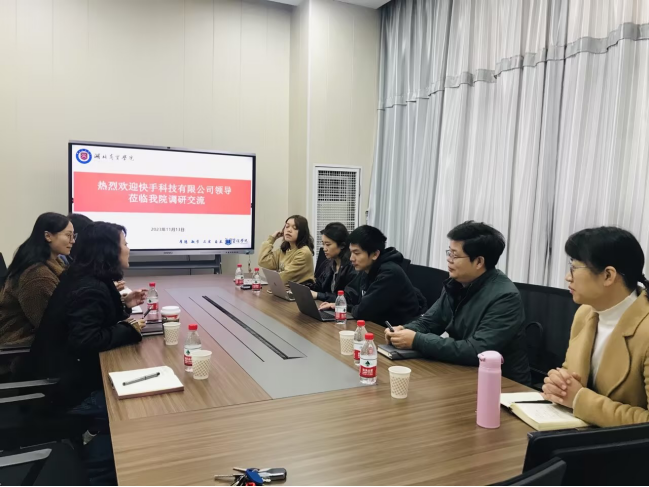 会谈期间,双方对高校就业与人才需求进行了深入的讨论。王珉对企业方的到访表示热烈欢迎,并向企业介绍了我院的办学特色以及创新创业活动成果。同时双方对校企深入合作、实习实训、实习就业等方面深入交换了意见。快手作为国内知名的互联网企业,具有独特的资源、平台优势,双方合作具有良好的基础和发展前景,校企合作形式多、空间大、前景广。