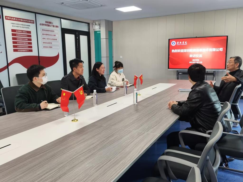 11月14日,深圳数阔信息技术有限公司的教育事业部总监刘凯及其团队到访经济学院就校企合作等事宜进行洽谈。经济学院副院长盖卫东和经济与统计教研室主任高爽热情接待了刘凯一行。