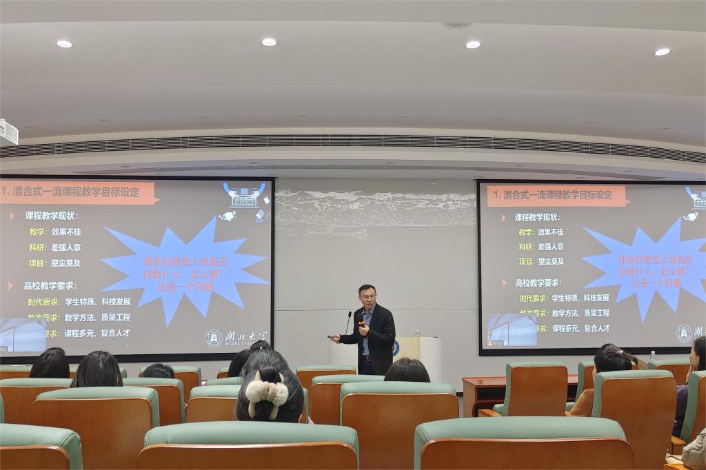 周红兵此次受邀来做经验分享和课程申报指导,旨在激励老师勇于进行课堂创新,打造更多优质课程。他围绕着“课程目标如何设定”、“课程教学如何创新”、“学生创新能力提升”、“教学优秀案例分享”四个方面展开讲座。