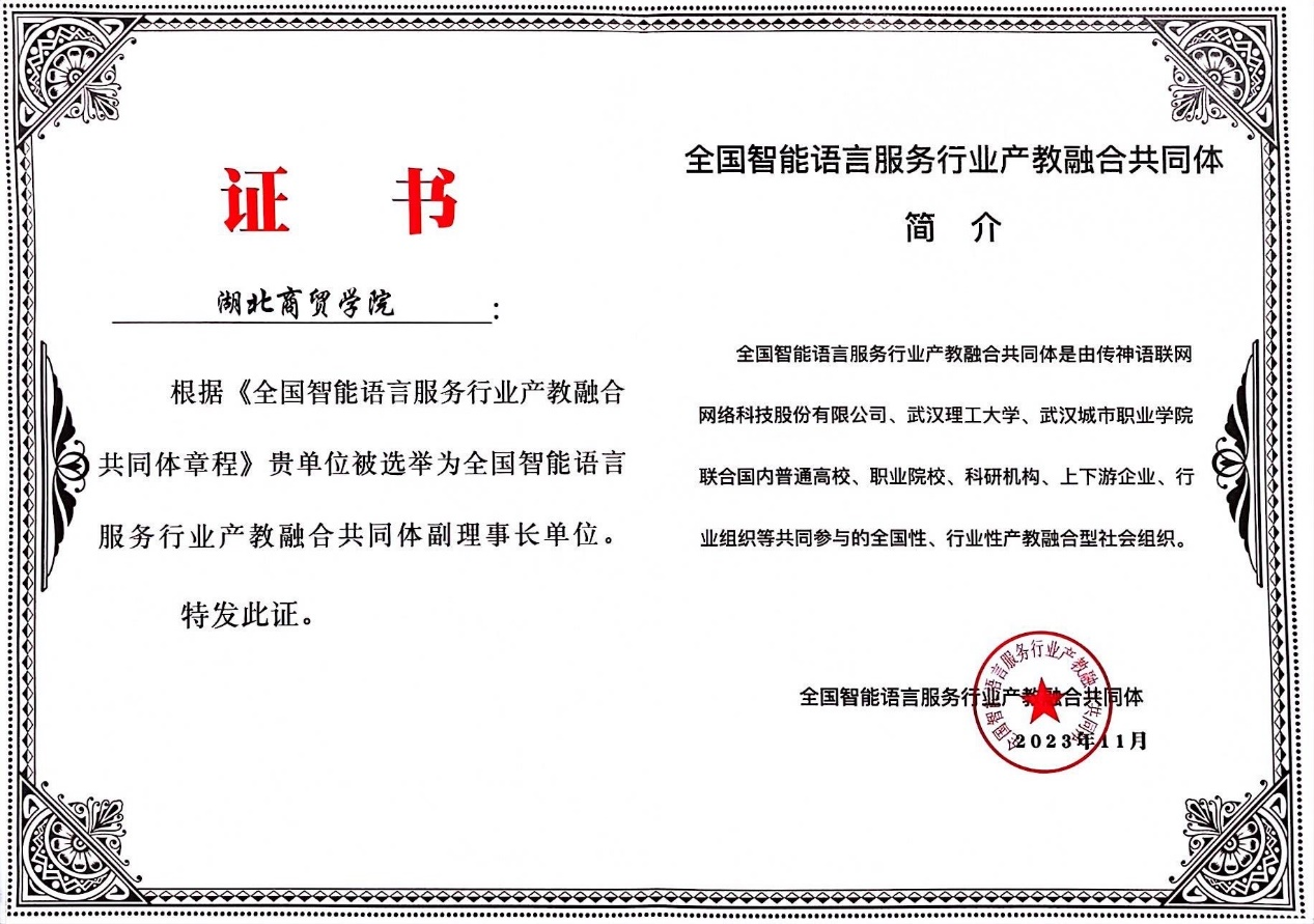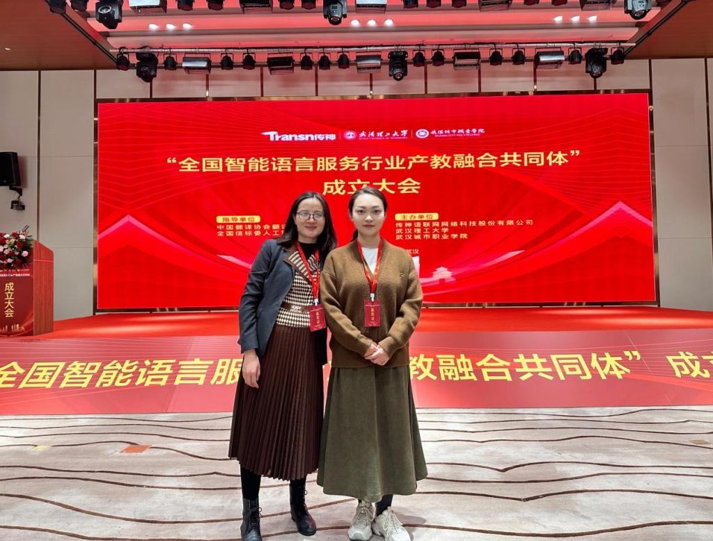 11月23日,全国智能语言服务行业产教融合共同体成立大会在武汉东湖高新区未来科技城举行。学我校外国语学院副院长武艳霞与应用翻译教研室教师张娟受邀参加此次成立大会。大会通过了《共同体章程》,并通过全体表决,选举我校为常务副理事长单位。