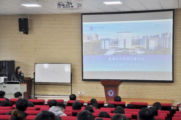 最后,张悦通报了2023年学院学生专升本录取情况,并就今年的专升本政策、注意事项做了详细宣讲,并分析了当前的就业形势,希望学生们抓住机会,积极参加2024年专升本考试,通过学历、能力提升改变自己的命运,实现人生的再次跨越。