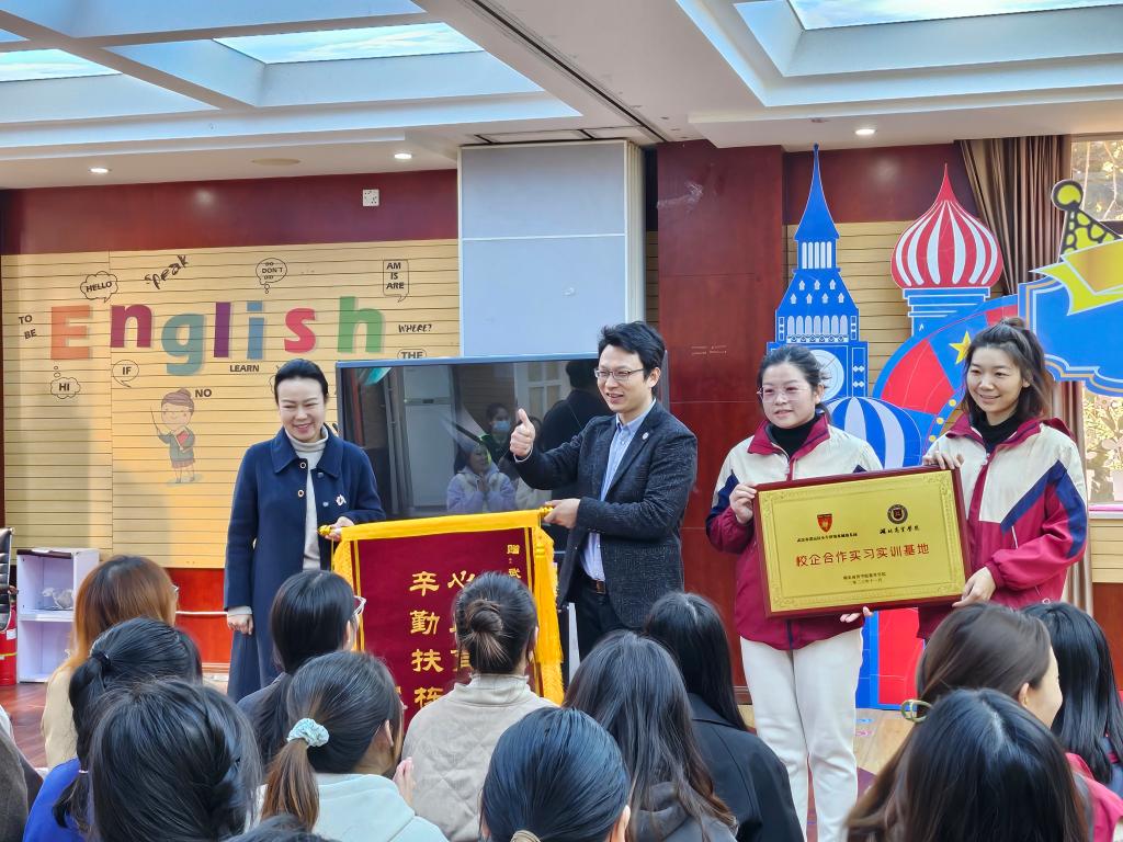 园长刘金亭高度肯定了同学们在幼儿园的实习表现,感谢同学们对幼儿园工作的大力支持,对班级教师的积极配合,对幼儿的细心呵护。希望能够把在幼儿园积累的保教经验付诸于实践,在实践中成长。教育学院副院长于莹感谢武汉海淀实验幼儿园提供了优质实习实训平台,感谢园所领导、老师们有温度的支持与指导,并对同学们寄予厚望,要求同学们通过这次实践学习,反思不足,寻找差距,做好规划,为未来的优质就业做好充分的准备,成为一名优秀的幼儿园教师。