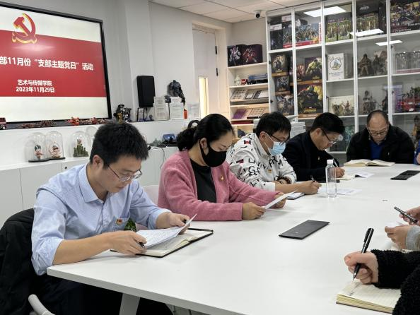 艺术与传媒学院行政党支部组织开展了支部十一月主题党日活动,支部书记薛果带领全体党员重温入党誓词、公布交纳党费情况以及带领全体党员学习了《习近平总书记对宣传思想文化工作作出的重要指示》等活动。薛果同志强调,通过此次党日活动的学习,我们支部要做到深入学习二十大会议精神,用党的二十大精神武装头脑、指导工作、推动实践,加强学习党史、新中国史、改革开放史、社会主义发展史教育,要成为有理想和担当的高校教育工作者。