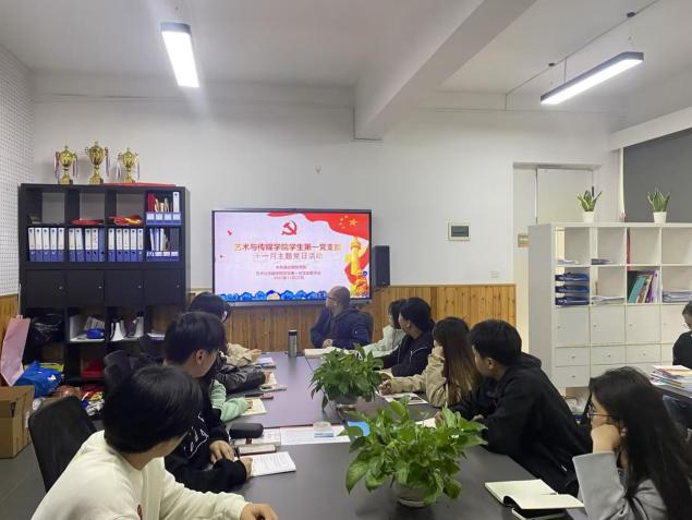艺术与传媒学院学生第一党支部组织开展了支部十一月主题党日活动,支部书记高三营带领全体党员重温入党誓词、公布交纳党费情况,并组织部分党员、入党积极分子分享自己的学习感想。高三营同志强调,通过此次党日活动的学习,我们支部要做到不仅加强理论培养,更要采取校内志愿实践和校外社会实践相结合的实际经验,充分发挥自身专业优势,锻炼和提升实践能力,用自己的眼睛去发现问题,用自己的能力去解决问题。