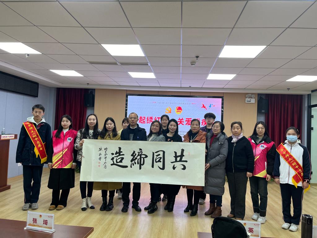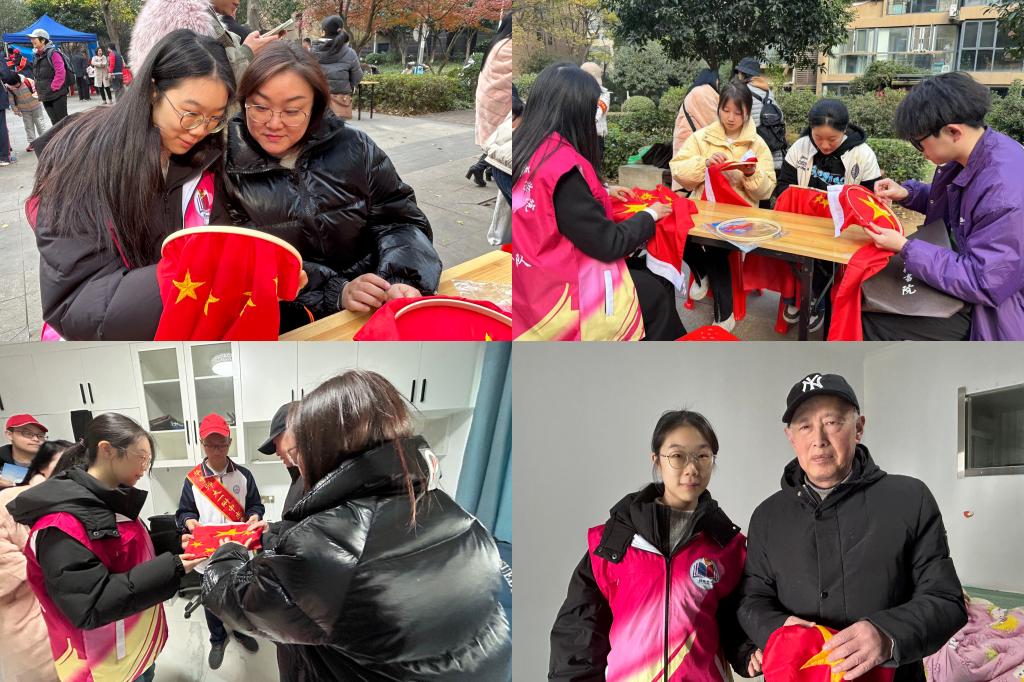活动当天,志愿者们现场参与启动仪式,深刻领悟此次活动的内涵和背景,与数名视障人士近距离接触,感受社会各界人士对残障人士的关爱。随后,志愿者们走进社区,现场绣红旗并向现场的居民们讲解平针绣法,帮助社区工作人员动员更多居民参与其中。最后党员代表李妤霜一行在社区党委书记张琦等社区工作人员的带领下将红旗捐献给社区视障人士手中,视障老人抚摸着五星红旗说到:“感谢同学们的爱心,感谢党和国家的关爱,让我能感受到五星红旗。这个活动对我们特殊人士来说意义非凡,我会好好珍藏。”