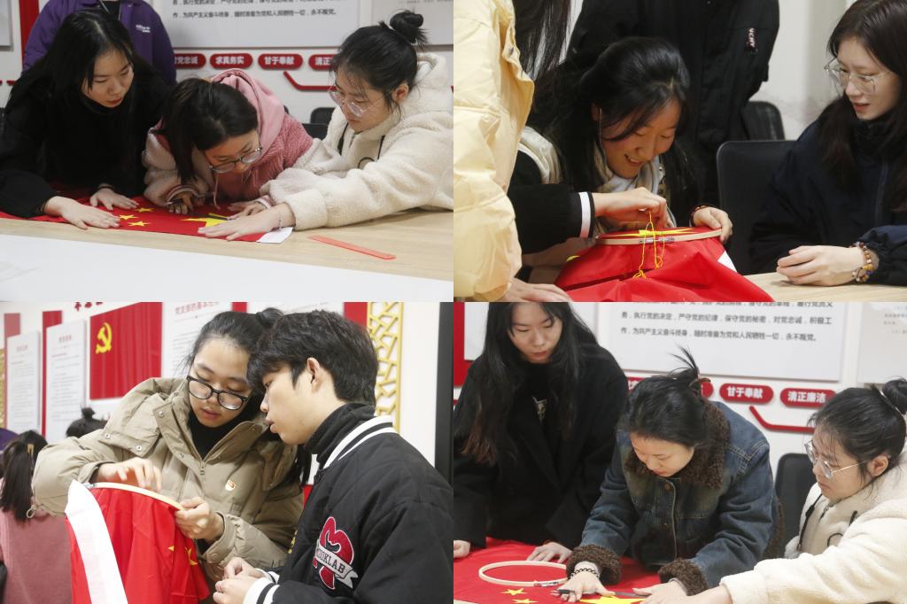 活动前期,党员代表跟随汉绣老师学习平针绣法:“先绣对角线,再逐一沿线绣出五角星的每个角……”。在教育学院创业楼会议室,学院25名学生党员及发展对象共同学习并运用这项传统绣法绣红旗,一针一线都倾注了同学们对党的敬仰之心和对视残人士的关爱之情。