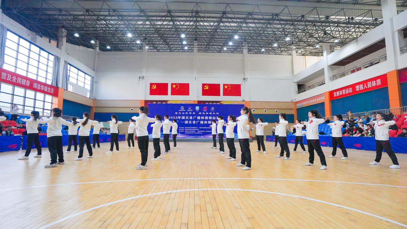 据悉,本次比赛由湖北省体育局社会体育管理中心和黄冈市体育事业发展中心主办,湖北省社会体育指导员协会承办,团风县体育局、团风县体育馆(县全民健身中心)协办,旨在做好湖北省广播体操活动的组织推广工作,夯实广播体操群众基础,选拔优秀后备人才备战第十五届全运会,共有39支队伍近800名运动员同台竞技。