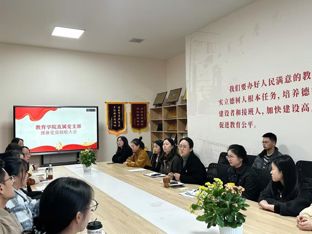为进一步加强和推进党员队伍建设,切实提高党员发展质量,保持党员队伍先进性和纯洁性。12月6日下午,教育学院直属党支部召开预备党员接收大会,对张盛媛等14名发展对象的入党问题进行讨论和表决。本次大会由党支部书记郑洁主持,全体无课教师党员及学生党员参会。