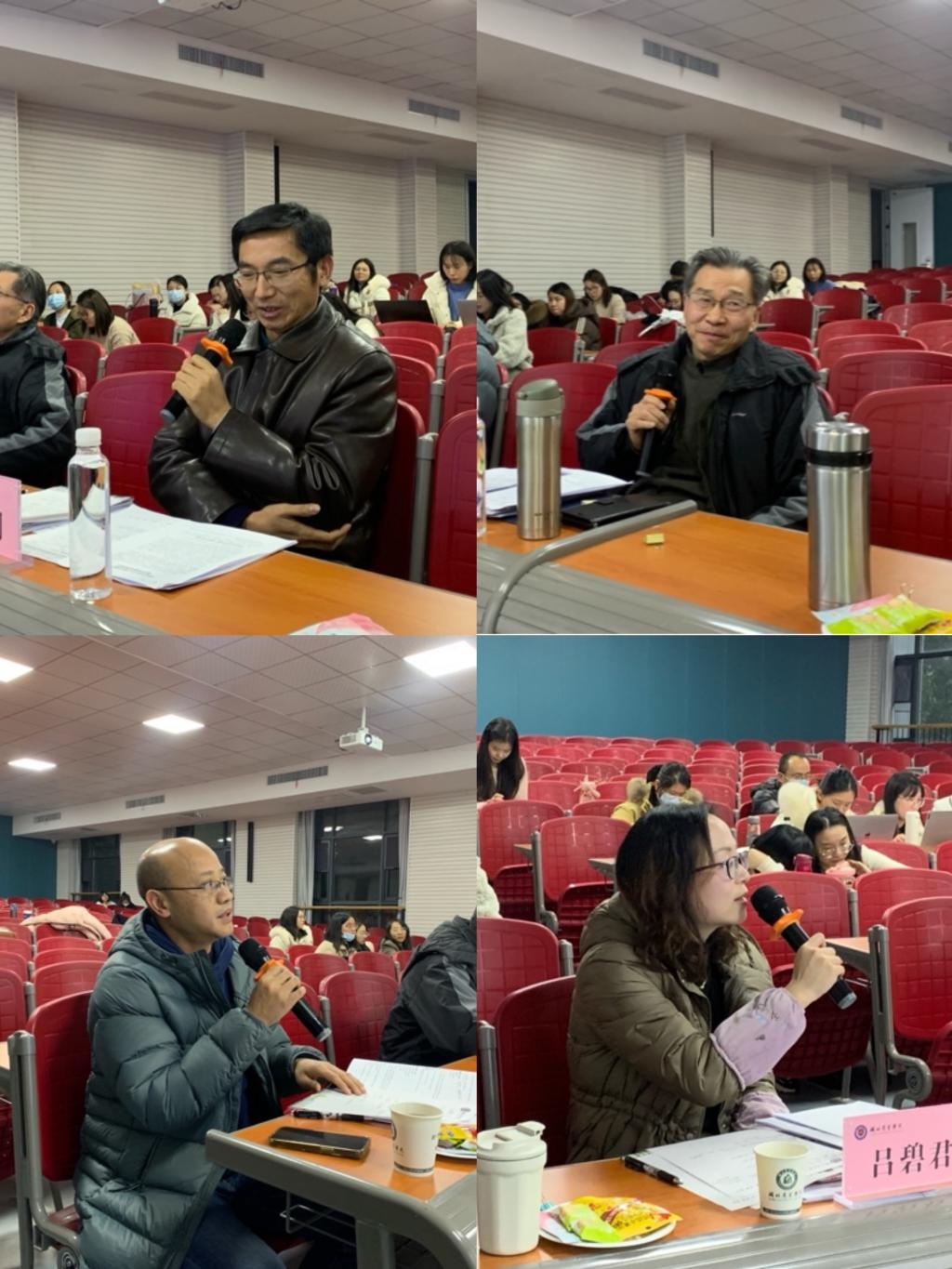 对参赛老师的课堂教学进行点评时,黎精明教授提出 “无创不新,要创必新”教学理念。彭浪教授建议融入大智移云、数智化等新兴理念,强化思政元素,加强家国情怀,提出“要激情不煽情,要严谨不失活泼,要有板书不乱书,喊口号与说实话相结合”的教育方式。胡凯教授认为部分参赛选手存在创新点不明确、创新报告中课程痛点与思政创新想融合性不高等问题,并建议将企业行为、统筹发展等实务案例融入授课设计过程中。周秀荣督导、吕碧君院长和郑晓燕院长对参赛教师的积极性、思政融入等表示赞扬,并纷纷对大纲完善、课程设计及教学成果提出相关建议。