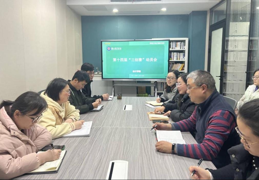 12月15日下午,会计学院召开第十四届全国大学生电子商务“创新、创意及创业”挑战赛工作推进会议,总结分析学院往年创新创业大赛工作完成情况,安排部署赛事重点工作,确保赛事高起点开局、高标准推进、高质量发展。会议由会计学院副院长郑晓燕主持,会计学院党总支副书记詹卓、会计学院全体辅导员及学生代表参与会议。