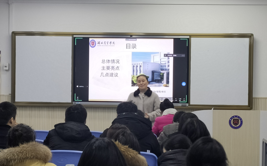 周秀荣对本学期授课质量情况进行了反馈,督导处本学期在会计学院听课105节,实现了武汉和咸宁两个校区,64名授课教师,本科班、专升本班和专科班全覆盖,教学运行基本正常,课堂总体教学质量呈正态分布。周秀荣对会计学院教师教学设备运用、内容讲解、教学方式、课堂氛围等方面作出了认可,并从教学态度、教学内容、教学方法和教学效果等方面对学院年轻教师提出了宝贵建议。