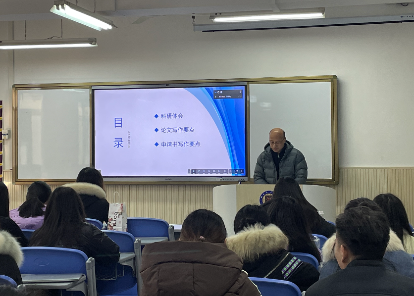 胡凯从科研体会、论文写作要点、申请书写作要点三个方面展开培训。他认为,提升科研能力,要做好以下几点:一是要珍惜学习机会,科研创新需要理论知识做为基础,只有坚持不懈地学习才能打下坚实的科研基础。二是要注重积累,发现值得研究的问题,融会贯通,理解科研规律,不断提高科研能力。把学到的知识转化为生产力、创造力,促进高质量科研成果的产出。三是要加强组织协调,创造良好的团队氛围。