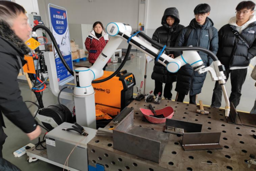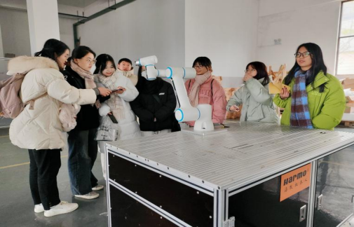 在车间,海默机器人公司工程师向学生们详细讲解了机器人的操作方法及应用场景。同时,还介绍了产品研发过程中对大数据技术方面的需求、应用、面临的挑战及未来智能制造领域的发展趋势。
