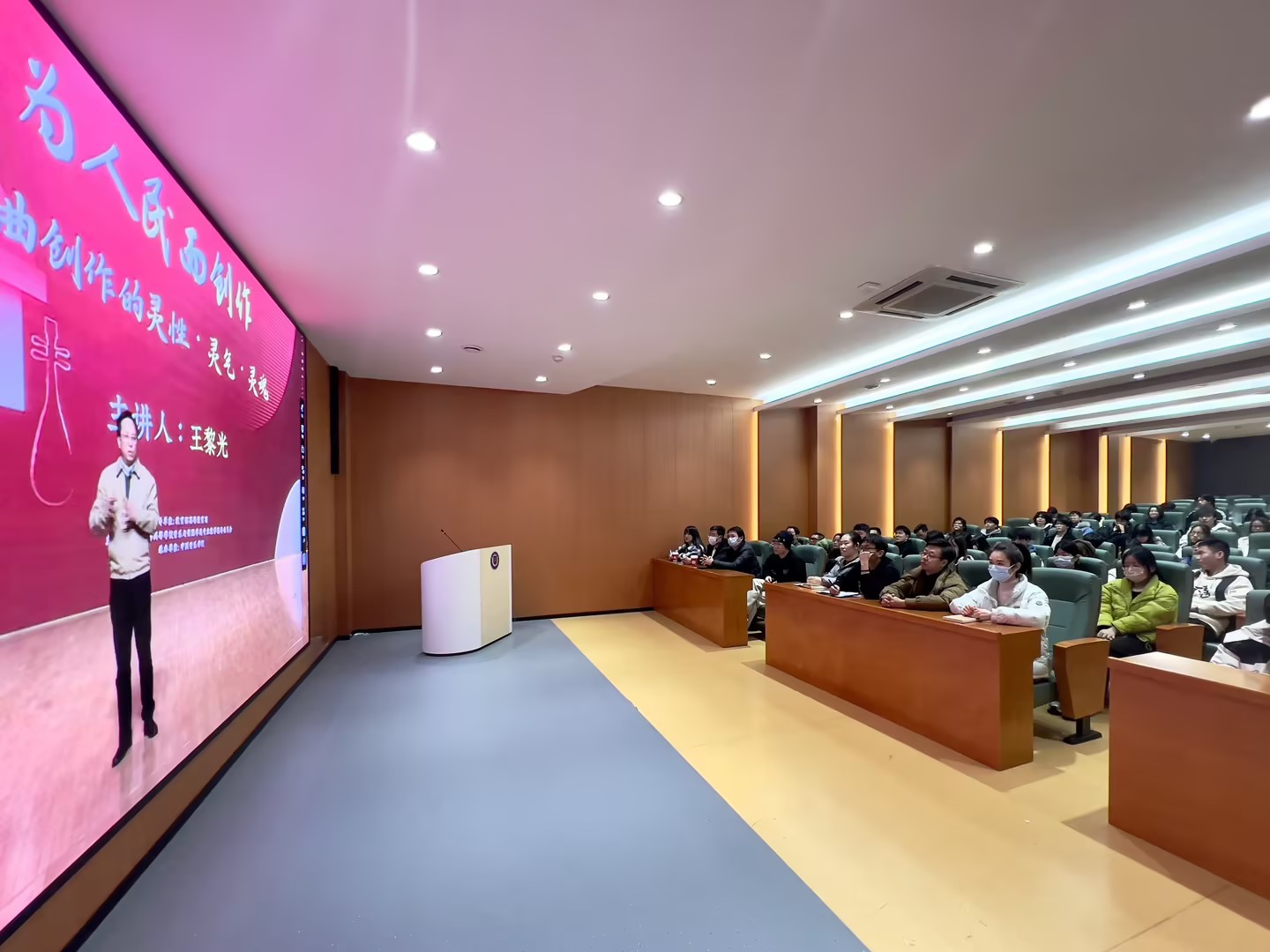我校充分认识到大讲堂的重要意义,积极组织艺术类在校师生观看学习。本次主讲人为中国音乐学院王黎光教授,他以新颖讲述形式和独特艺术角度为师生们带来了一场思想深刻、内容丰富、生动形象的专题讲座。他讲到,灵性是艺术创作者捕捉生活当中点点滴滴,形成的创作源泉和创作元素;灵气是创作者与劳动人民心灵相通、对中华优秀传统文化融会贯通之后所释放出的最大才华;灵魂是作品体现的时代气息和中国精神,是作品生命力的根本。伴随着栩栩如生的沙画展示,王黎光教授以亲身创作的多部音乐作品为例,带领大家身临其艺术人生和创作故事之境。学习结束后,全体师生深感主讲人王黎光老师的创作经历之丰富,明白了艺术来源于生活却又高于生活的理念。本次艺术大讲堂既增强大家的理想信念和党性修养,也为大家注入了强劲的奋进动力。