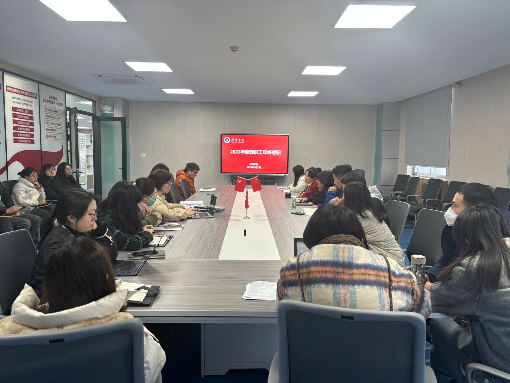 在听取了各位老师的汇报后,党总支书记吴俊表示从各位老师的述职中看出大家都是非常用心、履职尽责,随着“十四五”规划进程过半,2024年学校也将迎来高质量发展的关键之年,希望全体教师要以时不我待的紧迫感,自觉增强责任感、使命感,担当尽责,不忘初心,踔厉奋进,以更严的要求、更高的标准、更强的执行力,推动学院高质量发展。