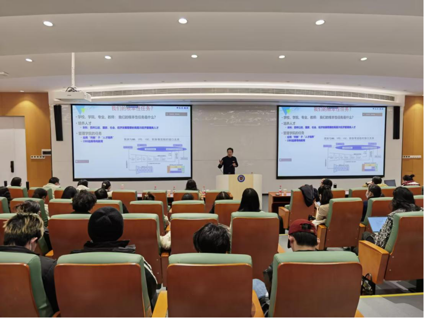 新年伊始,万象更新。1月3日,管理学院在鸿博楼报告厅举行第46期未来管理论坛。应管理学院邀请,教育部高等学校工商管理类专业教学指导委员会副主任委员、华中科技大学田志龙教授结合“OBE教育理念下的本科人才培养:以学生为中心和以能力培养为导向”主题为参会师生带来了一场精彩的学术报告。副校长胡柳出席论坛并主持,管理学院全体教师及学生代表参会。