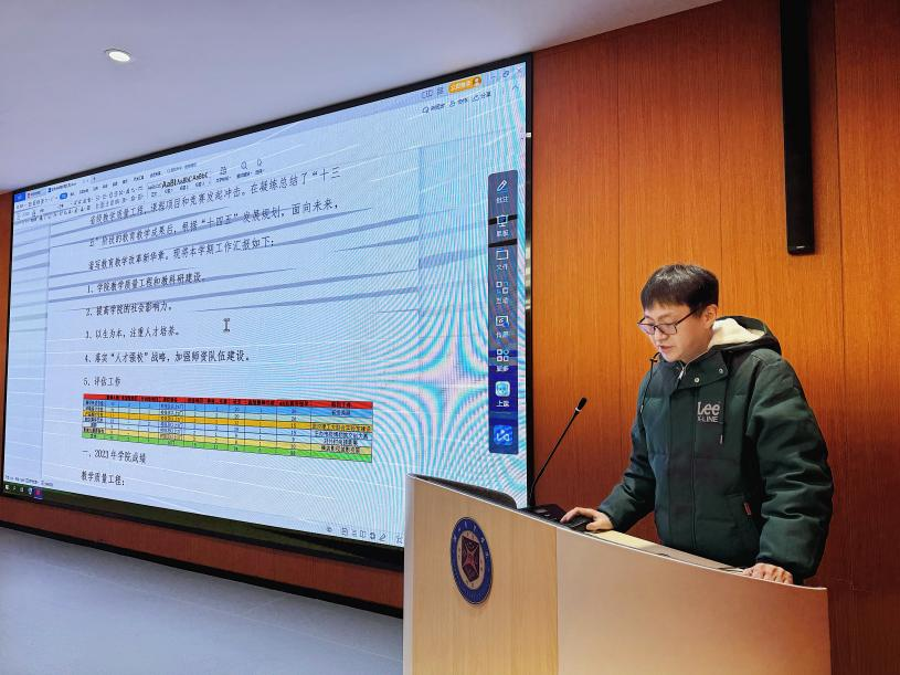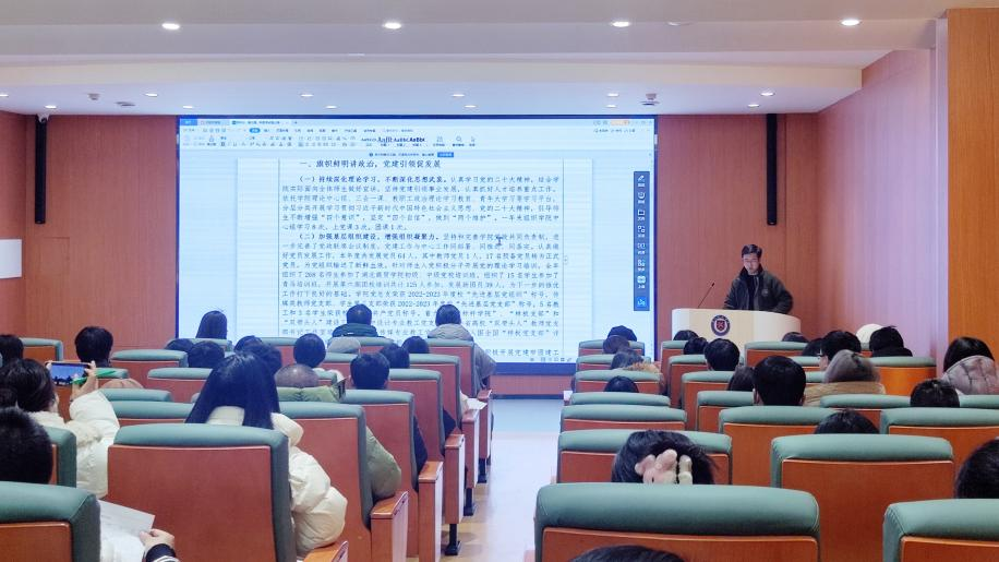党总支书记毛宇从党建引领、推进三全育人工作以及存在不足和下一步工作计划3方面详细汇报了2023年度的工作内容以及特色亮点。