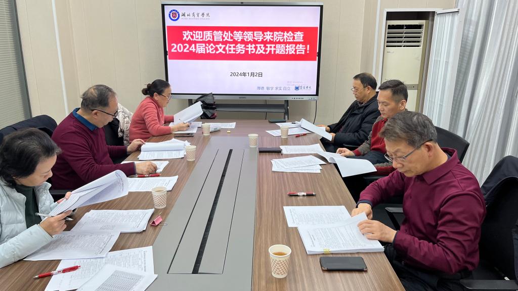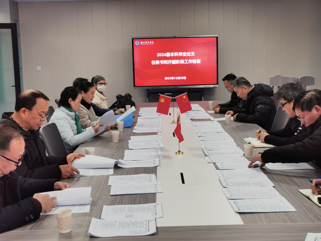 本次专项检查范围为2024届有本科(含专升本)毕业生的所有专业,2024届毕业生人数3219名,涵盖8个学院、24个专业,检查以二级学院自查和学校检查组抽查的形式进行。根据工作安排,二级学院自查结束后,由校级教学督导组成的检查组于2023年12月29日——2024年1月9日对全校的毕业论文(设计)进行抽查,抽取了共483份本科毕业论文(设计)的任务书和开题报告。各校级教学督导根据《湖北商贸学院毕业论文(设计)任务书、开题报告检查表》中的检查评分指标,分别对毕业论文(设计)任务书、开题报告各部分的撰写质量、指导规范等方面进行了全面检查和评分,为学院毕业论文(设计)初期开题工作把脉诊断,并现场反馈了检查问题,提出了整改建议。