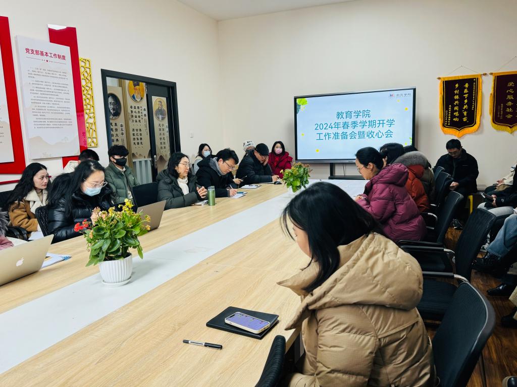 3月1日上午,教育学院在创新创业楼三楼会议室召开新学期第一次学院工作会议,会议由学院常务副院长罗涛涛主持,直属党总支书记郑洁、副院长于莹及全体教职工参加会议。