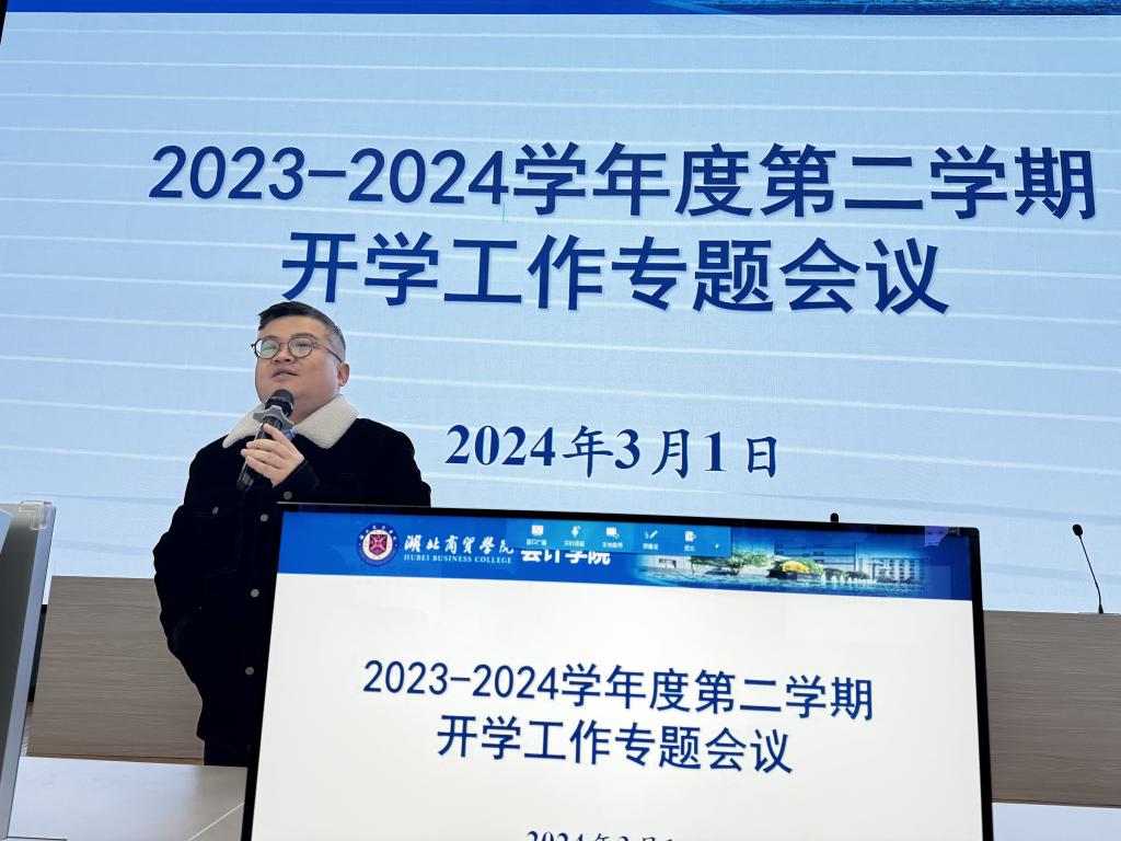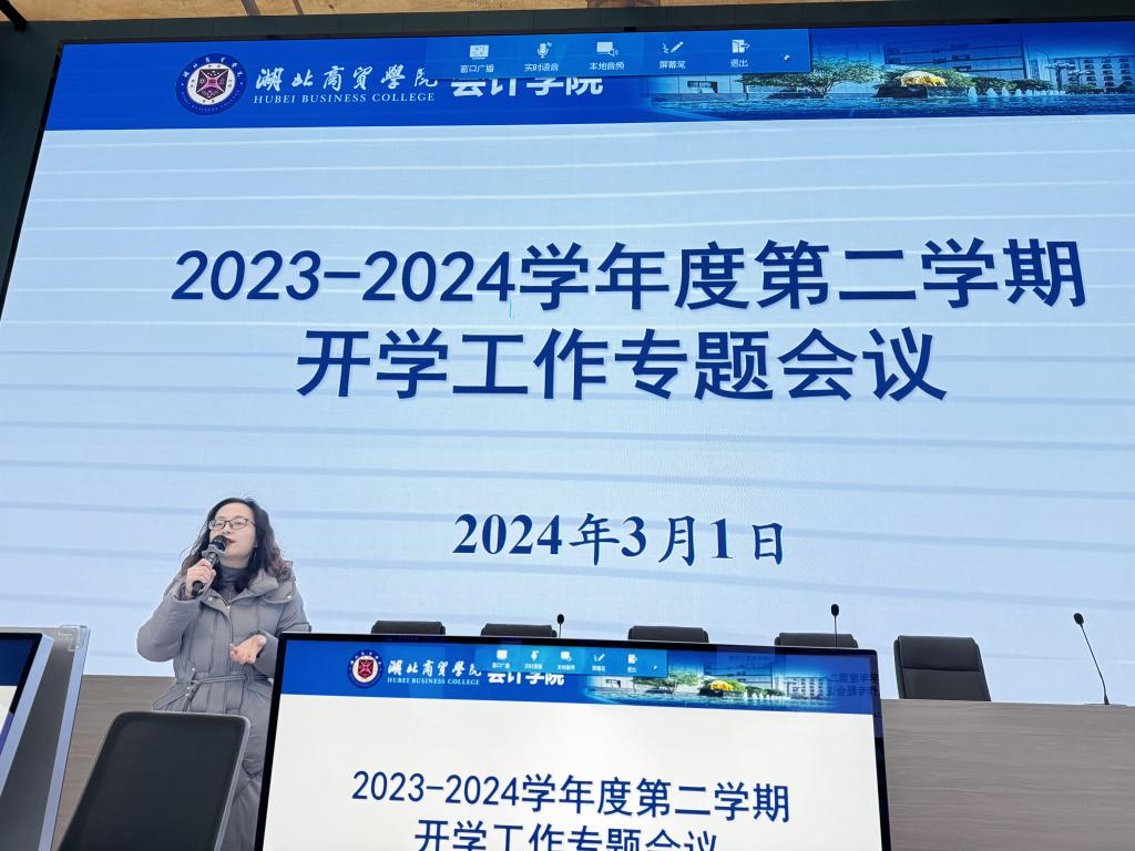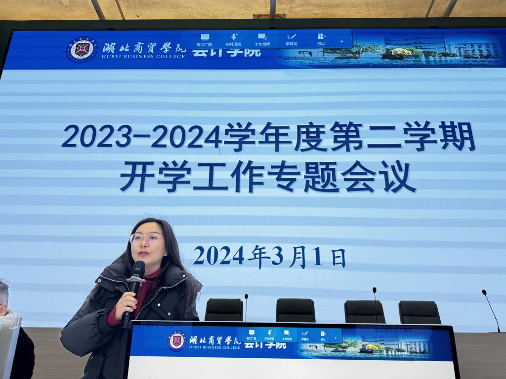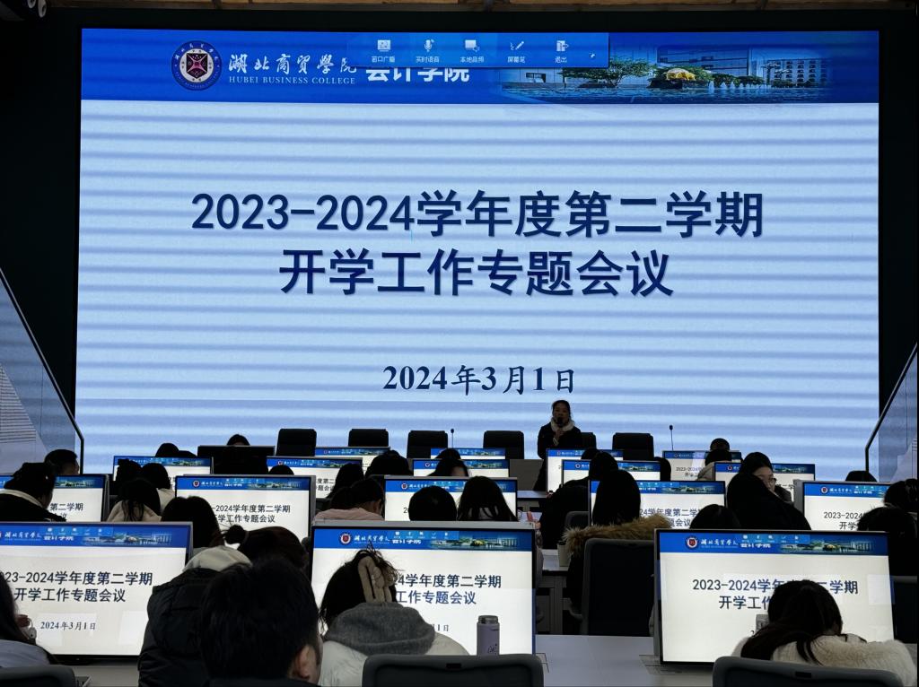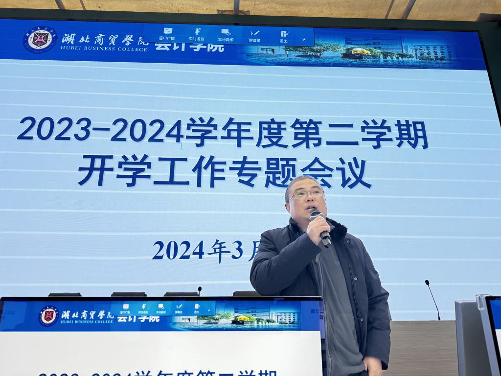 3月1日上午,会计学院开展了2023-2024学年第二学期开学工作专题会议,院长吕碧君和党委书记赵忠民在会上分别强调了教学、科研和师德师风的重要性,副院长肖虹霞、副院长郑晓燕、党委副书记詹卓及全体教职工参加了会议。