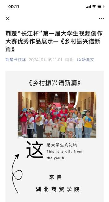 本次比赛由湖北省文联、湖北省农业农村厅、湖北省广播电视局主办,湖北省电视艺术家协会、中国地质大学(武汉)、湖北吉楚云管理有限公司、长江云新媒体集团、湖北文艺网承办。此次大赛自去年6月19日启动以来,全国高校共计7500余名大学生报名参与。通过全网公开投票的方式对创作视频进行展播、投票、海选,专家评审组综合展播投票和作品质量等综合情况选出55个入围作品进入终评。最终,评审专家通过观看视频和打分讨论的方式确定了15部优秀作品。