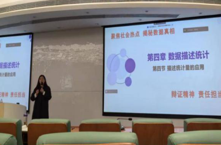 高爽利用BOPPPS+PAD+PROJECT 模式对《统计学》课堂进行创新。她从“全国平均工资”社会热点问题出发,结合居民收入数据可视化图表,详细讲解全国平均工资背后的集中趋势测度和偏态分布等知识点,有效为学生们打造真情、真感、真知的统计学教学创新课堂,培养学生成为堪当民族复兴大任的新时代青年。