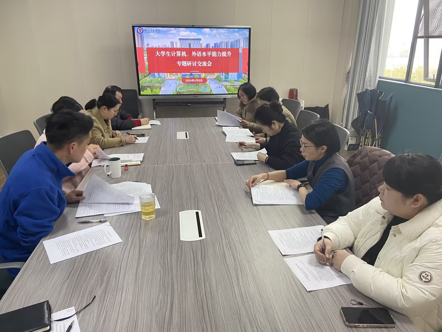 会上,陈靓秋向学院传达本次工作通知精神,并做部署安排,希望学院提高认识,科学布局,整体规划,针对全校学生制定出一套切实可行的计算机和外语能力提升实施方案。