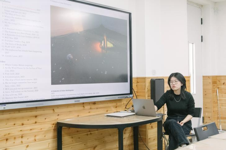 郑天依则是一位在武汉出生、香港长大的艺术家。郑天依的作品通过文字、现成物、表演、装置和录像等多种媒介展现,关注城市空间和身份议题。她的作品涉及离散、边界及异质地志学等多个主题,展现出深刻的思考和独特的艺术风格。在交流会上,郑天依向师生们展示了她的部分代表作品,并分享了她在创作过程中的心路历程和感悟。
