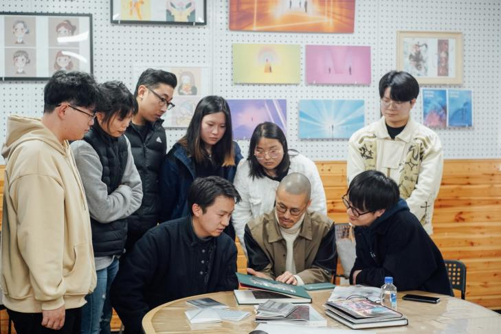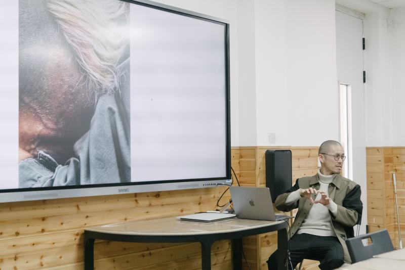 Satoshi Fujiwara(藤原聡志),这位国际知名的日本艺术家,以其独特的摄影方式和艺术视角而广受赞誉。在交流会上,Satoshi详细介绍了自己的创作理念和过程,分享了在柏林的生活和创作经历,为在场的师生们带来了全新的艺术视角和思考。