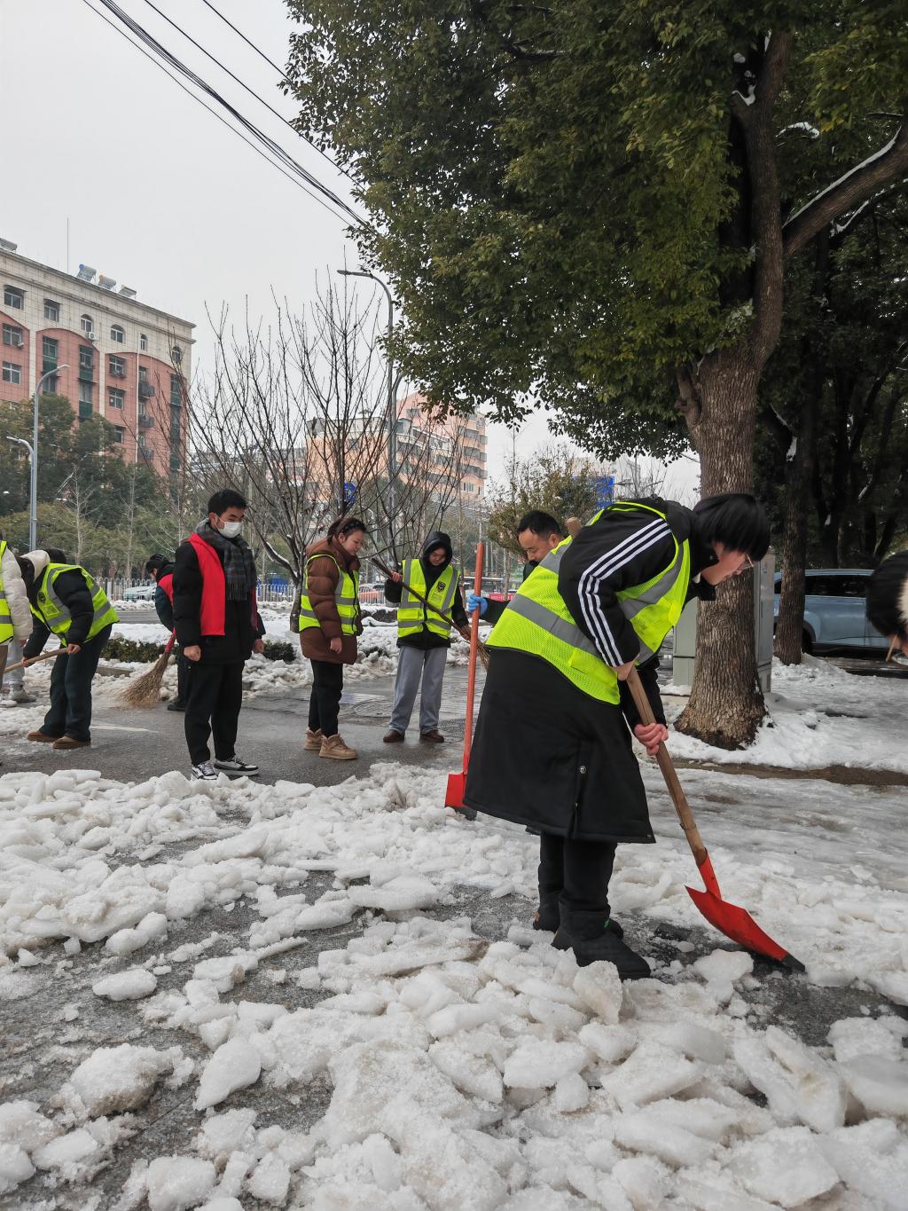 2024年2月,一场突如其来的大雪让湖北省京山市披上了银装,大雪过后的积雪和冻雨给市民和返乡归来的人们造成了诸多不便。为保障市民的平安出行、帮助返乡人顺利归家,铭心志愿队队员肖瑶加参与了京山市“筑梦京山 接您回家”志愿服务活动。肖瑶在大雪中铲雪除冰,为城市的冬日安全贡献自己的一份力量。
