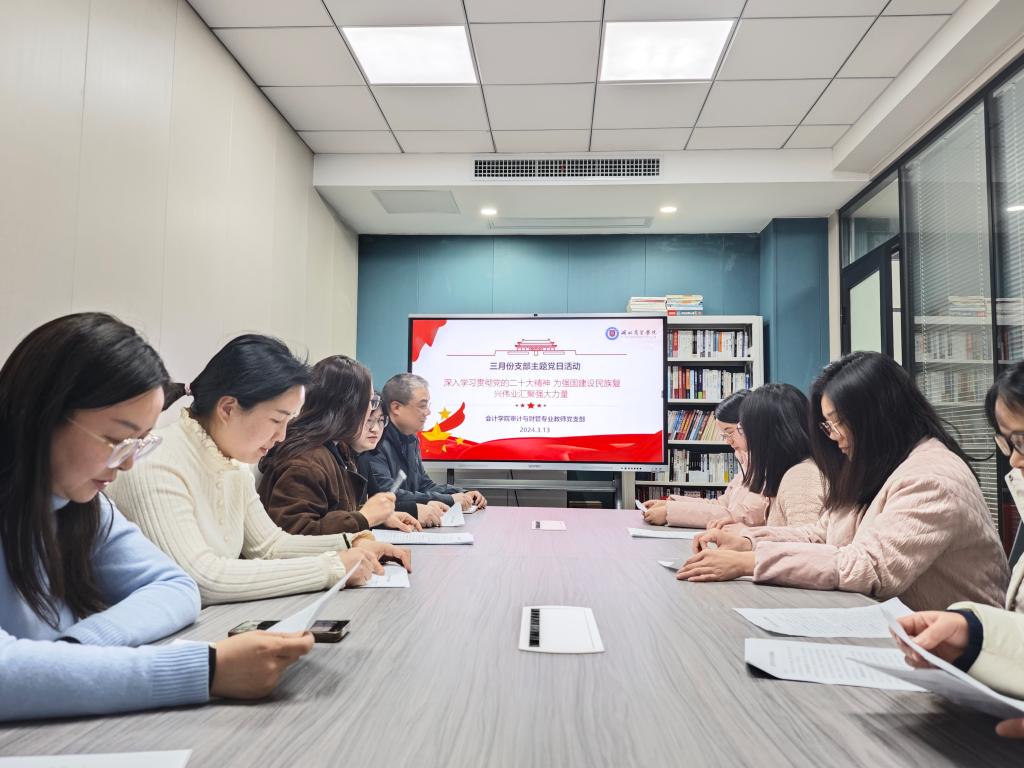 3月13日,会计学院审计与财管专业教师党支部在学院102会议室开展“深入学习贯彻党的二十大精神 为强国建设民族复兴伟业汇聚强大力量”的支部主题党日活动,活动由支部书记赵友萍主持,支部全体教工党员参加。