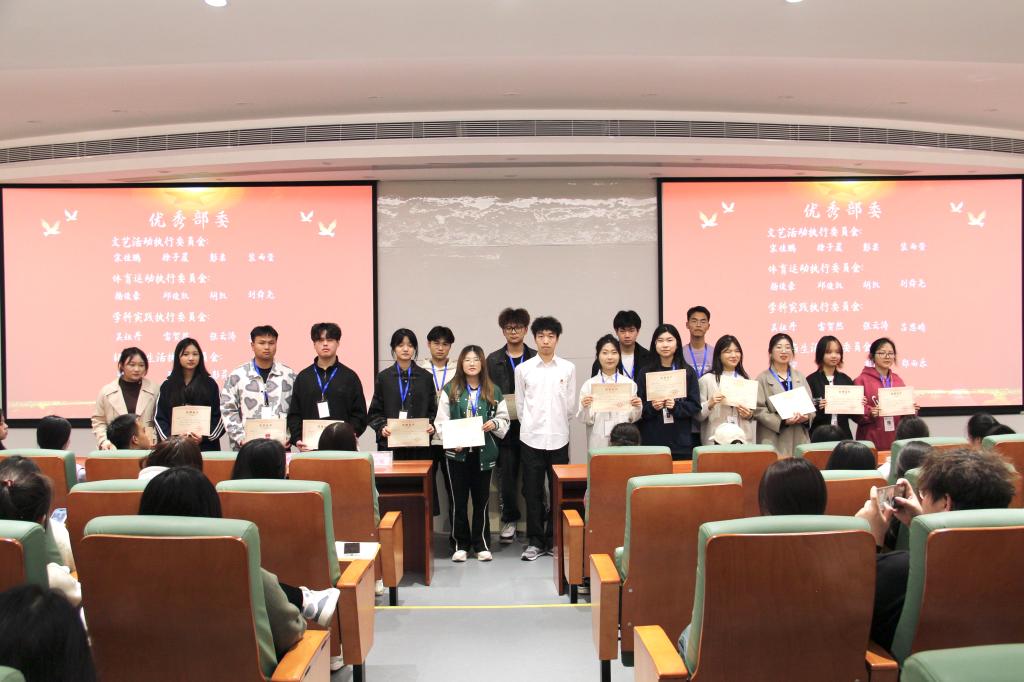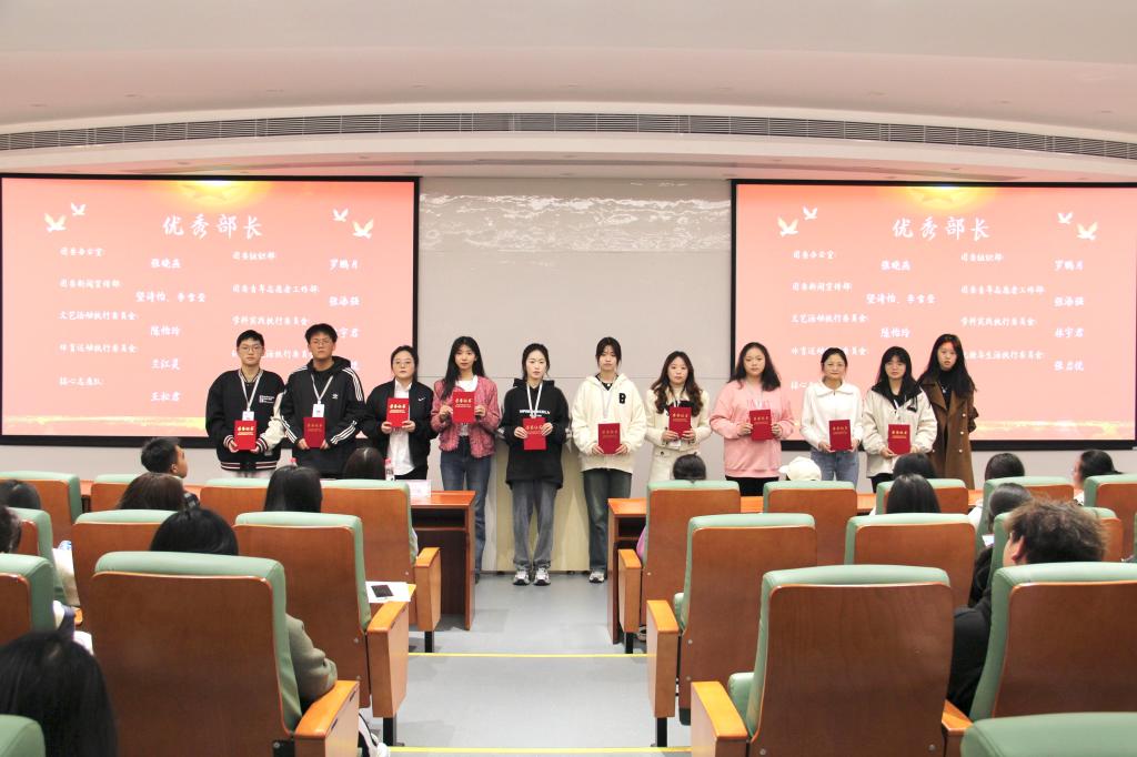 学院学生会轮值主席郭君泓上台宣读2023-2024学年第一学期优秀部长名单。他们辛勤工作,以身作则给部委们树立一个良好的榜样!希望他们继续保持良好的工作态度,做好表率,带领部门更高效的组织开展工作。