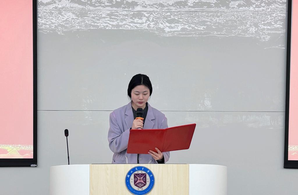 学院学生会轮值主席林静茹上台宣读2023-2024学年第一学期优秀部门名单。对优秀部门进行表彰。希望其他部门能向优秀部门学习,以饱满的激情和更加奋斗的姿态投入到部门工作中。